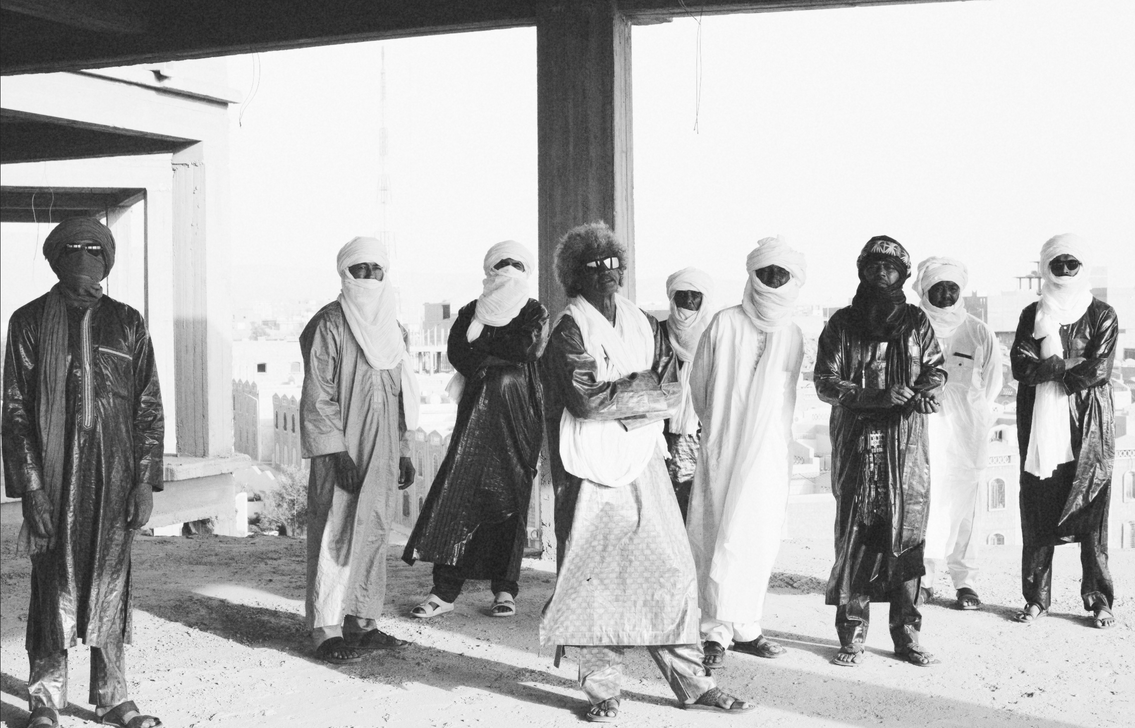Avec leurs longues tuniques du désert et leurs turbans touaregs ou shesh, les Tinariwen sont les précurseurs de ce qui est désormais connu sous le nom de « blues du désert », un style musical qu’ils appellent eux-mêmes « assuf », qui signifie également « nostalgie » ou « mal du pays » en langue tamasheq. Après avoir troqué leurs kalachnikovs contre des guitares après leur participation à la rébellion touareg de 1990, les membres de Tinariwen sont devenus de véritables rebelles du rock “n” roll, captivant leur public avec leurs voix rauques, leurs riffs de guitare planants et leurs rythmes entraînants. Au cours des deux dernières décennies, leur popularité n’a cessé de croître et ils sont régulièrement invités à des festivals partout dans le monde, où ils ont beaucoup contribué à faire connaître la culture et l’identité touaregs.